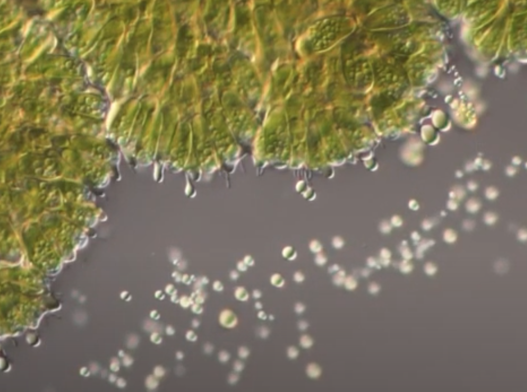 Ejecting single cells bloated with oil from colonies. Why are they doing this? Stressed? Making new daughter colonies?